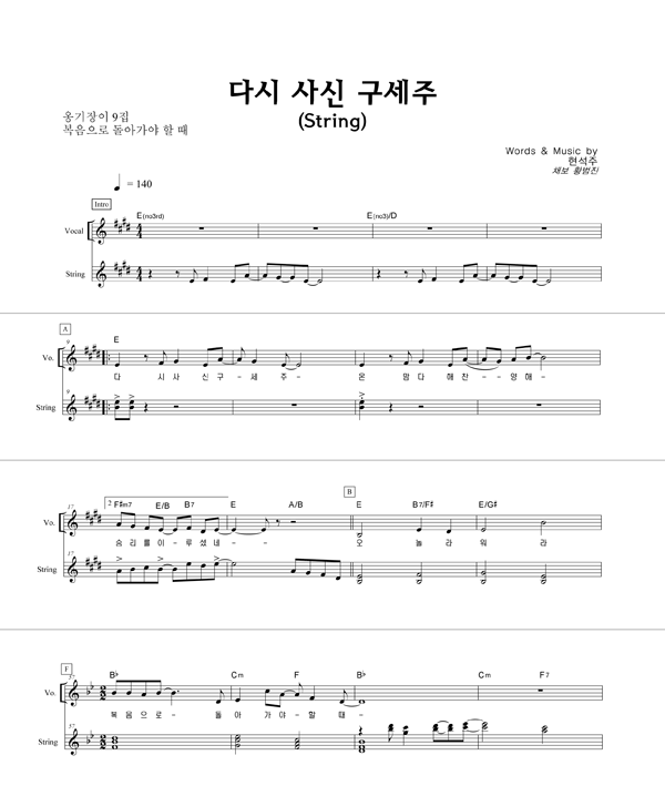| 다시 사신 구세주 | 성가 2부 + 피아노 반주 |