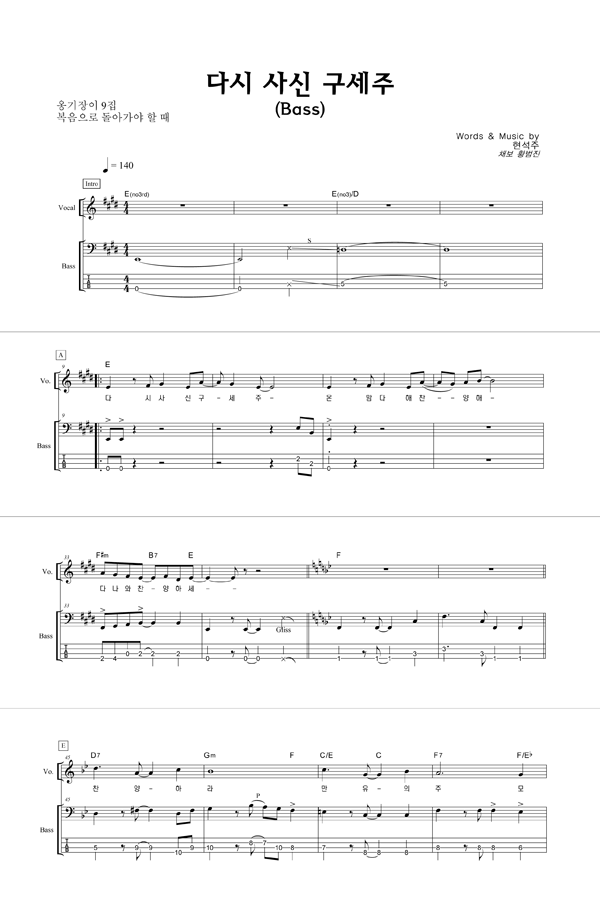 | 복음으로 돌아가야 할 때 | 성가 4부 + 피아노 반주 |