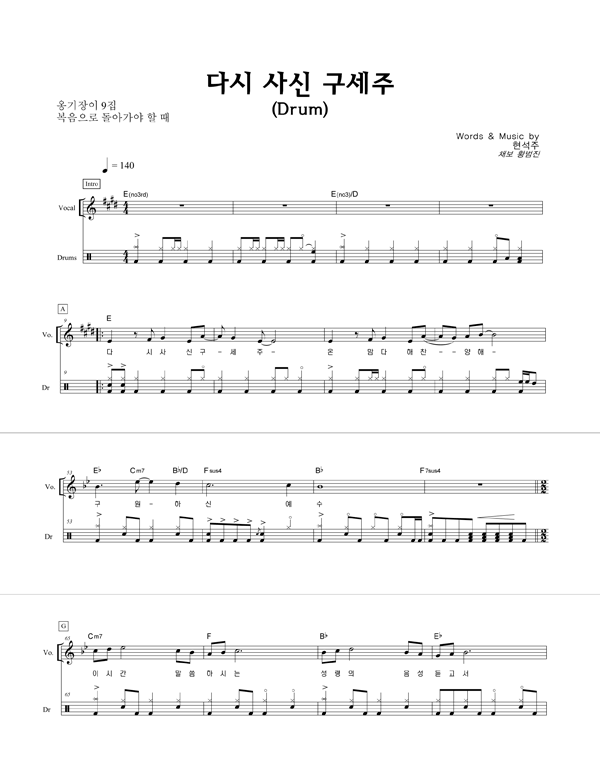 | 다시 사신 구세주 | 성가 4부 + 피아노 반주 |