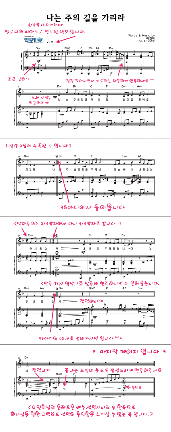 | 나는 주의 길을 가리라 | 성가 2부 + 피아노 반주 |