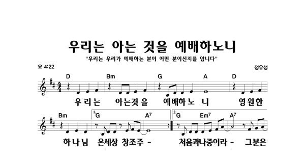 | 우리는 아는 것을 예배하노니 | 단선 |