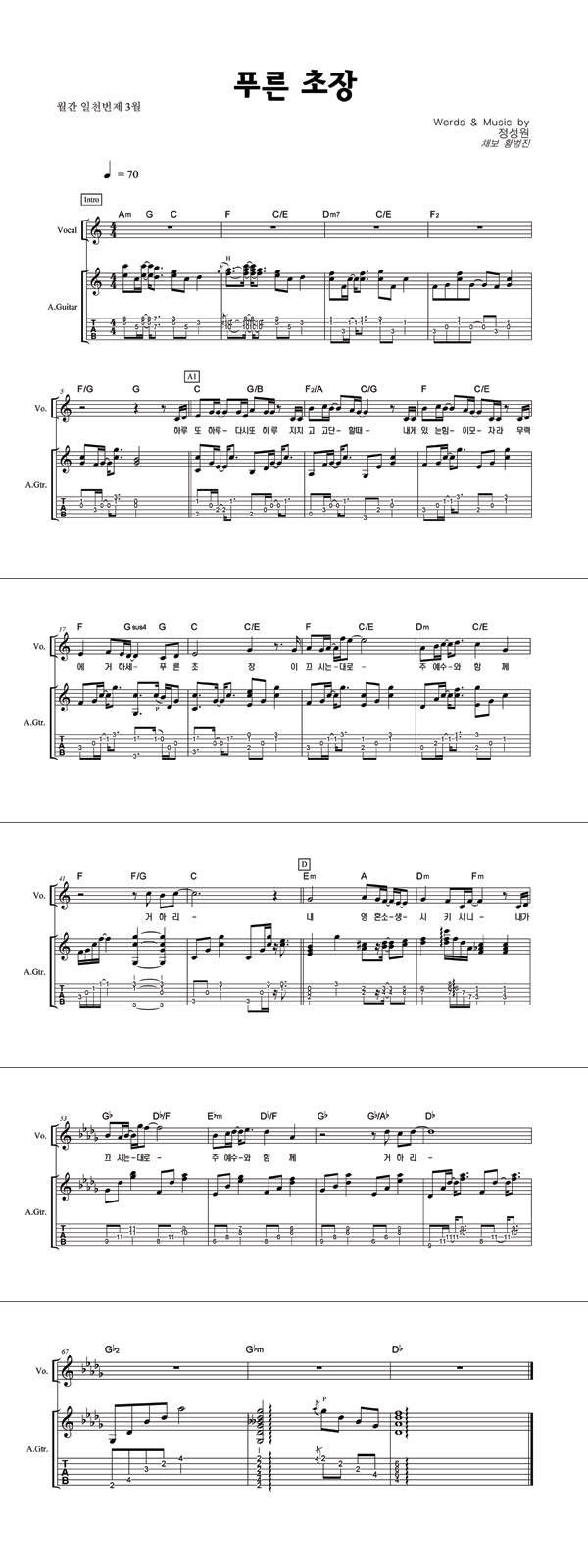 '푸른 초장' 의 다른 악보형식