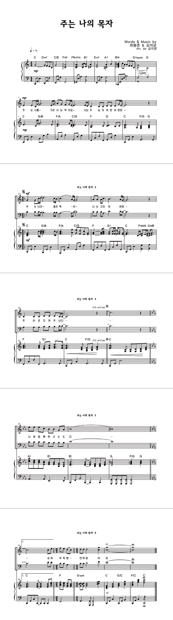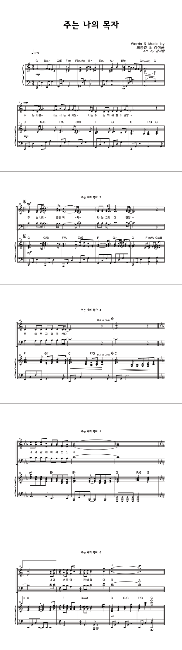 | 주는 나의 목자 | 성가 2부 + 피아노 반주 |