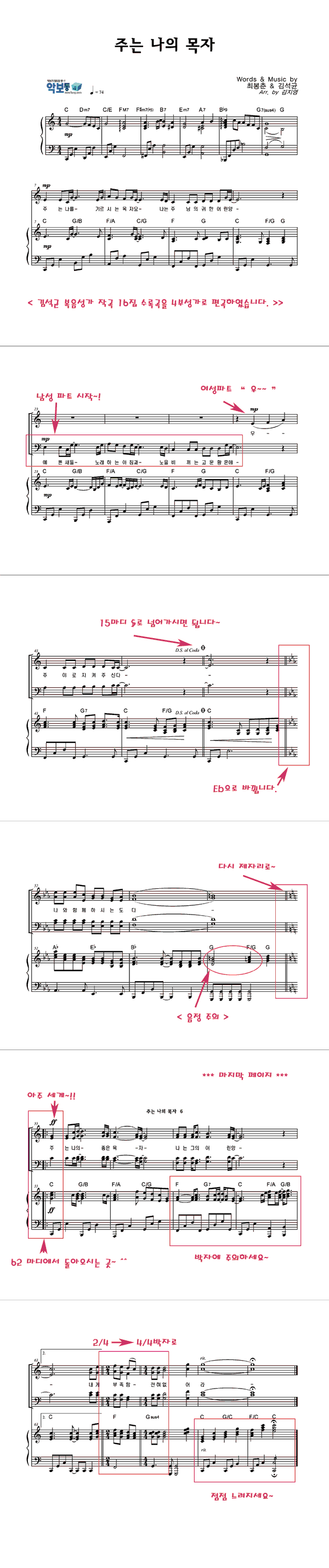| 주는 나의 목자 큰글씨 | 성가 4부 + 피아노 반주 |
