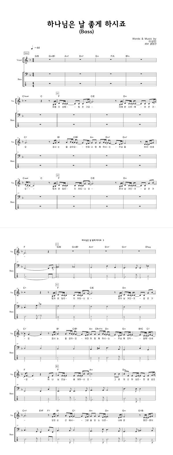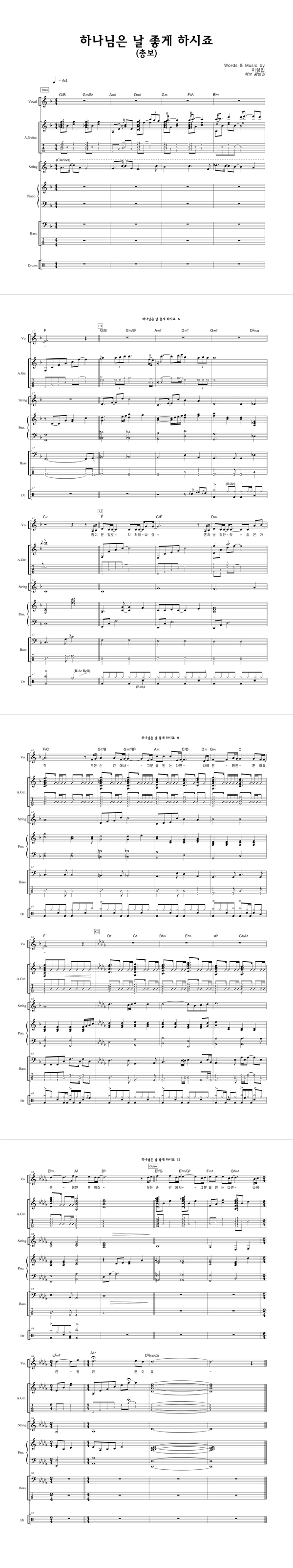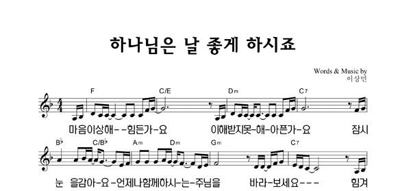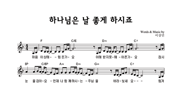 | 하나님은 날 좋게 하시죠 | 성가 2부 + 피아노 반주 |