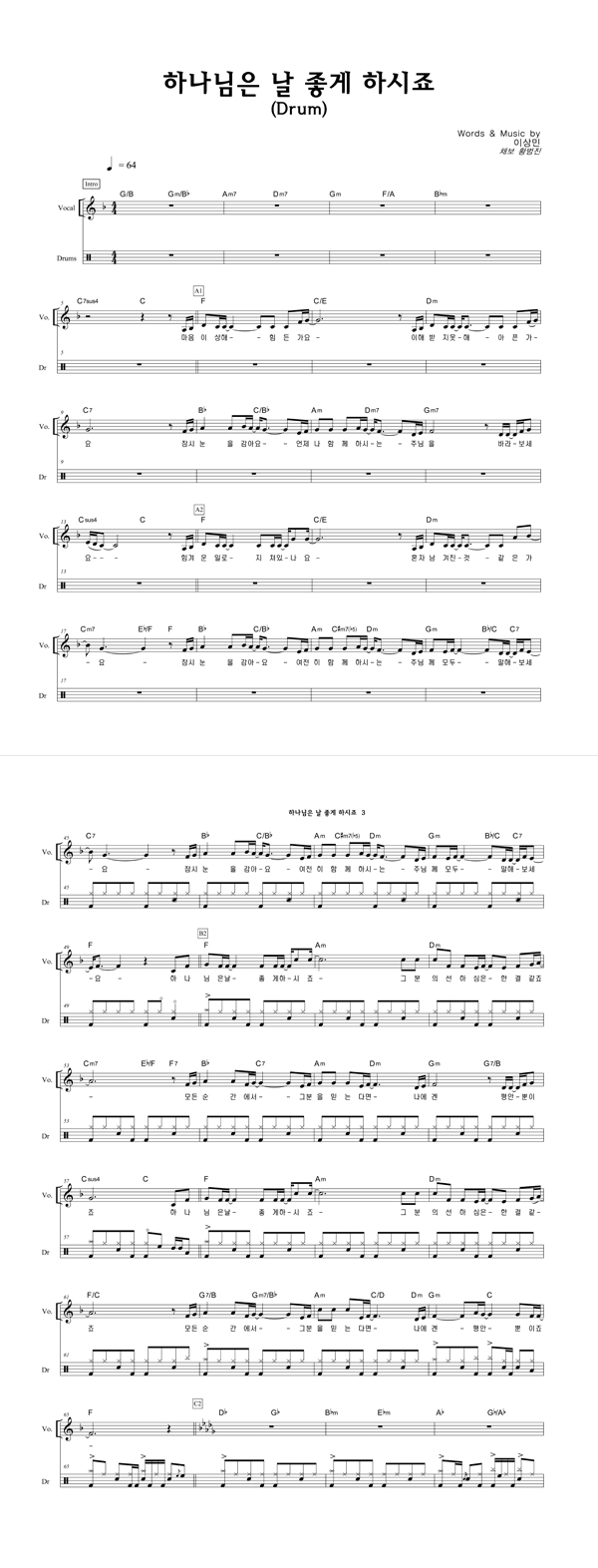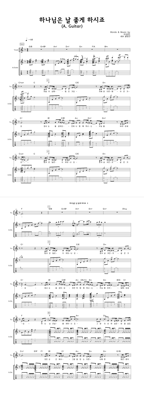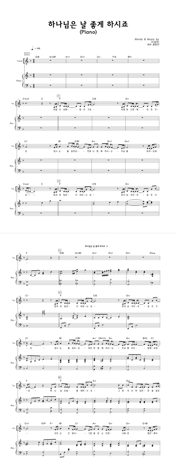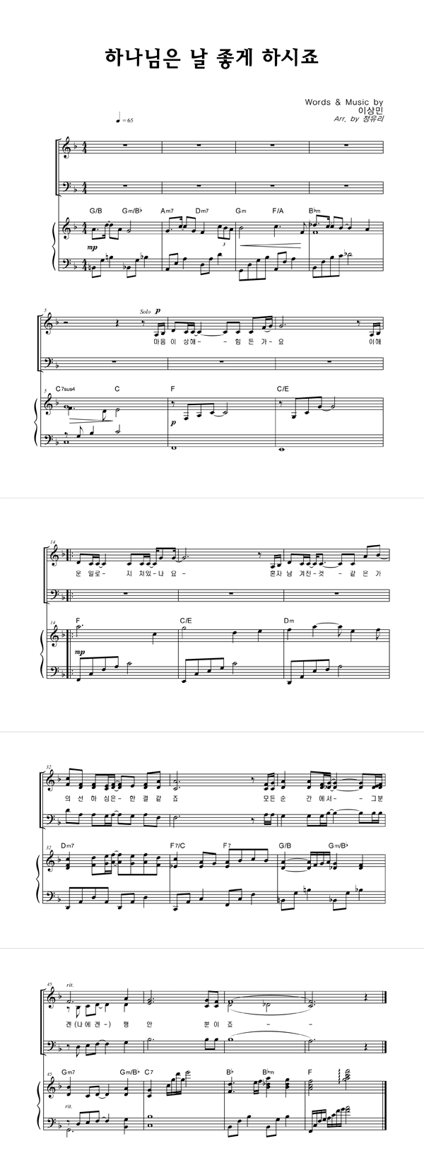 | 하나님은 날 좋게 하시죠 | 성가 3부 + 피아노 반주 |