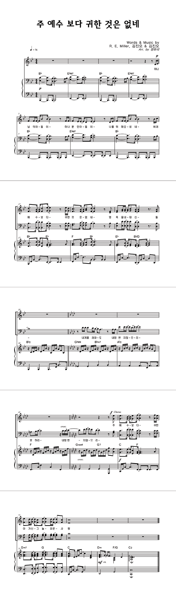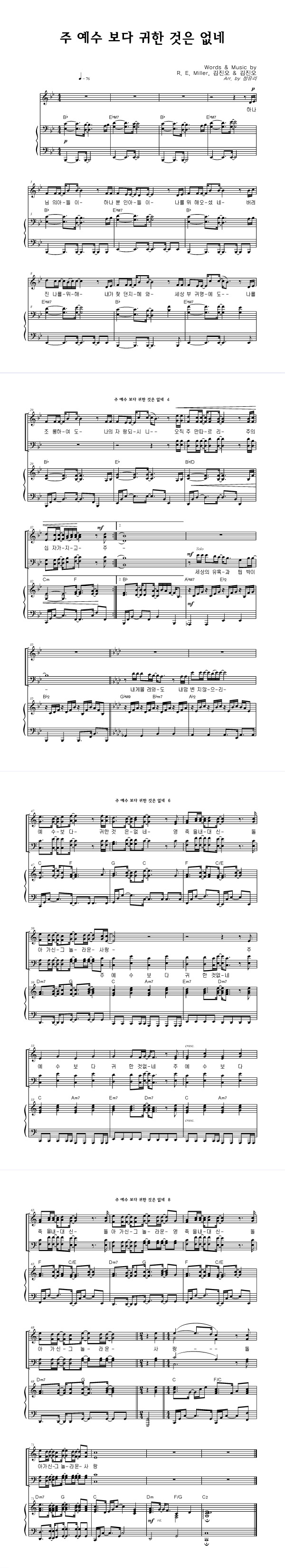 주 예수 보다 귀한 것은 없네 성가 4부 + 피아노 반주