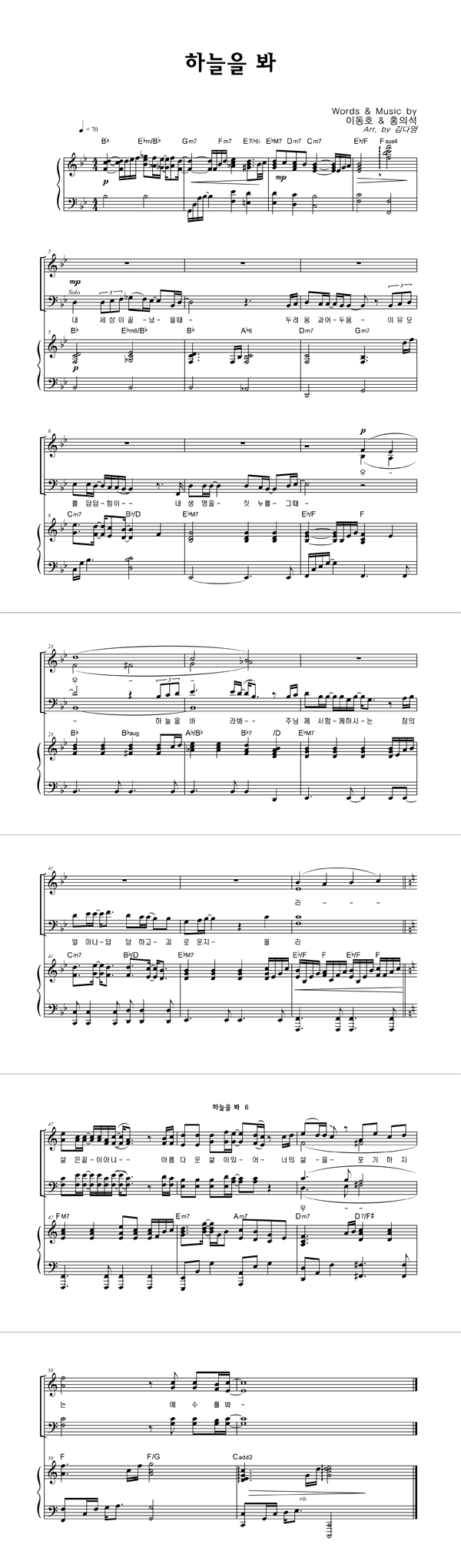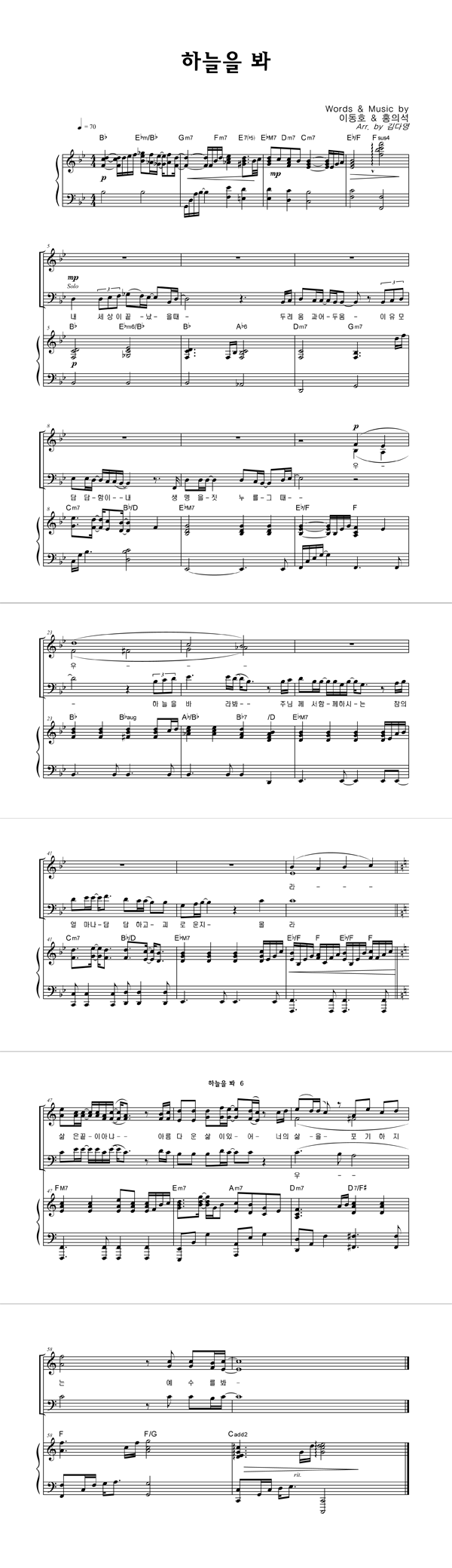 하늘을 봐 성가 4부 + 피아노 반주 조옮김
