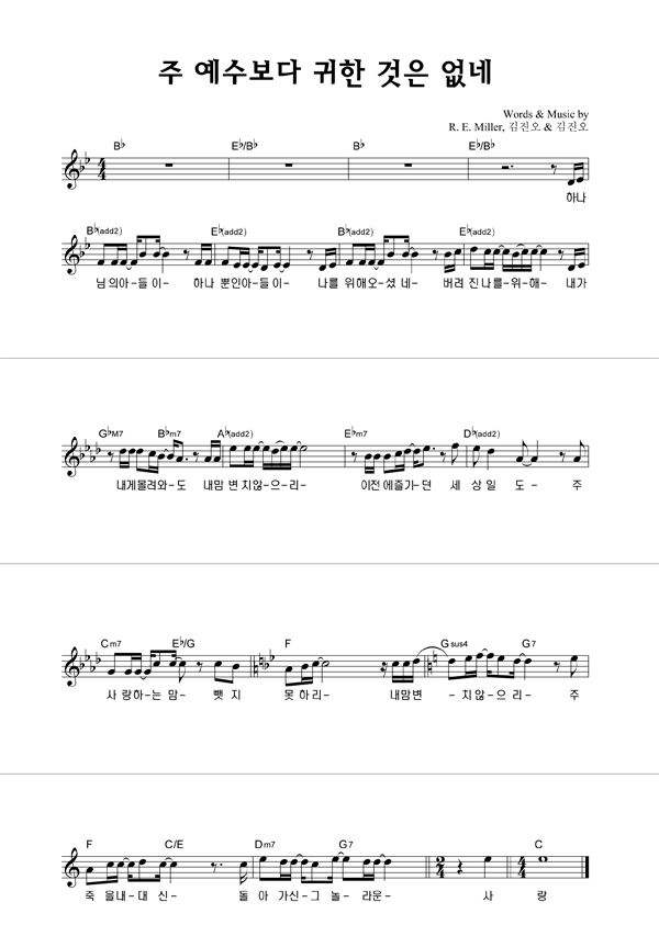 주 예수 보다 귀한 것은 없네 큰글씨 성가 4부 + 피아노 반주