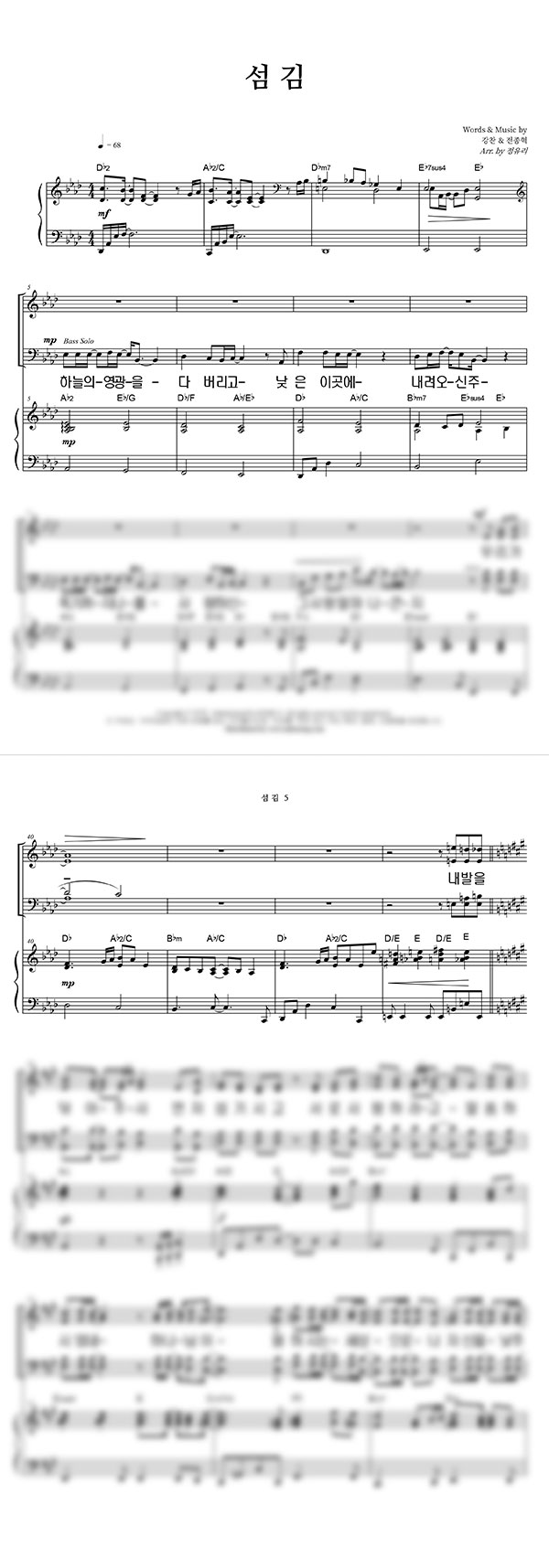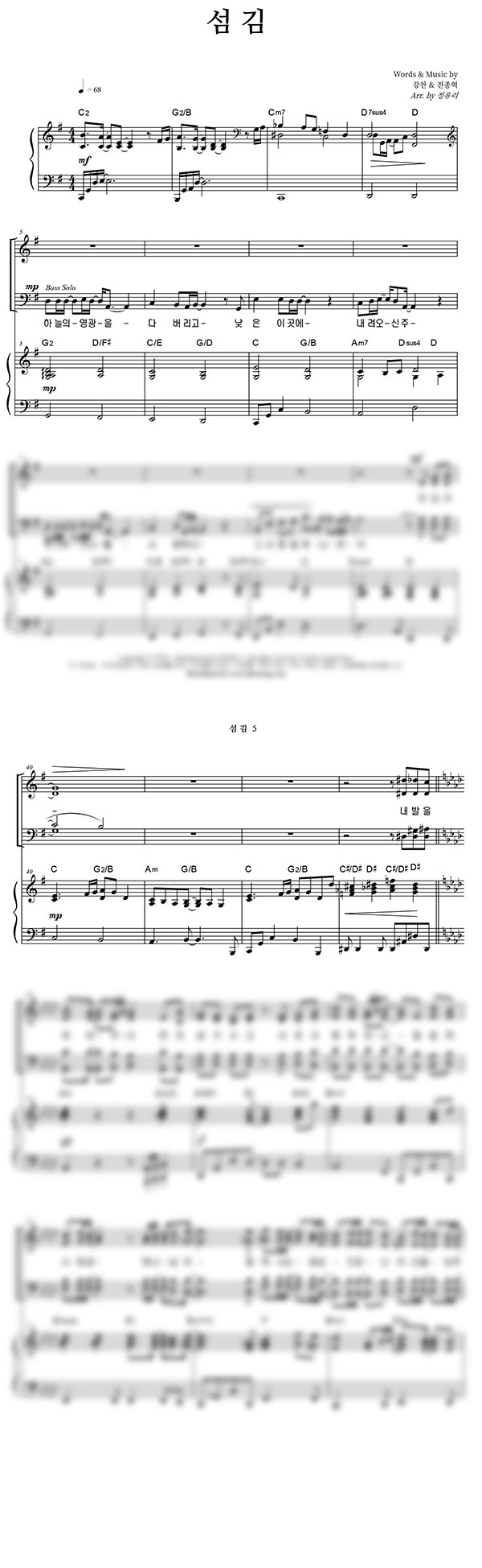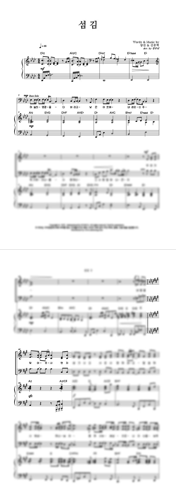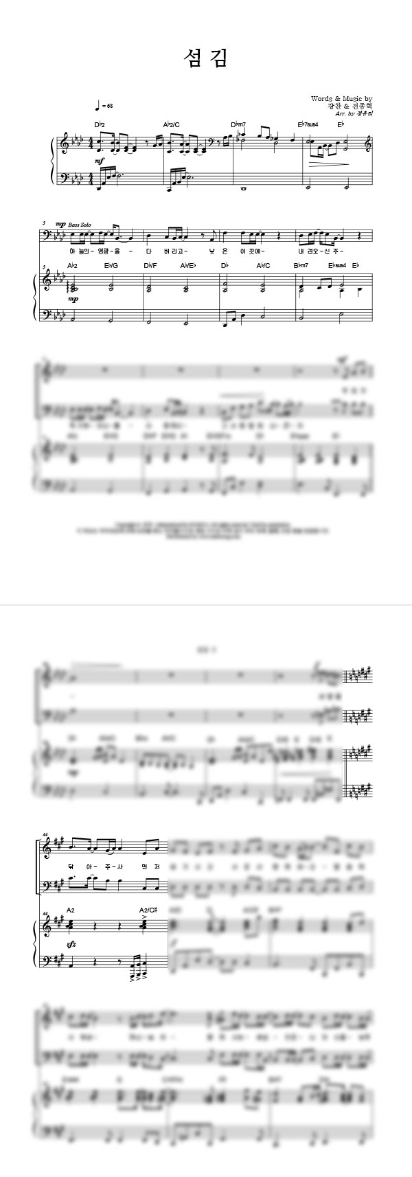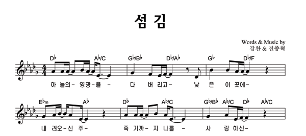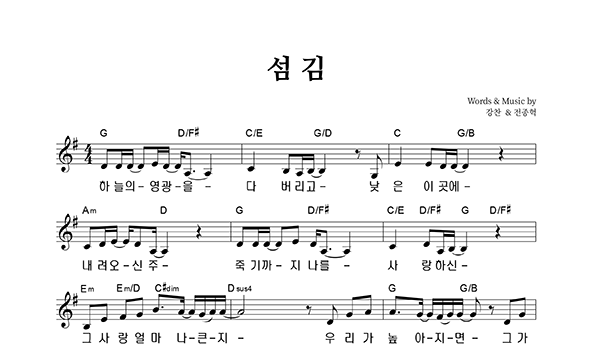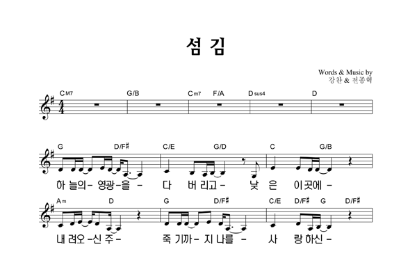 섬김 성가 4부 + 피아노 반주 조옮김