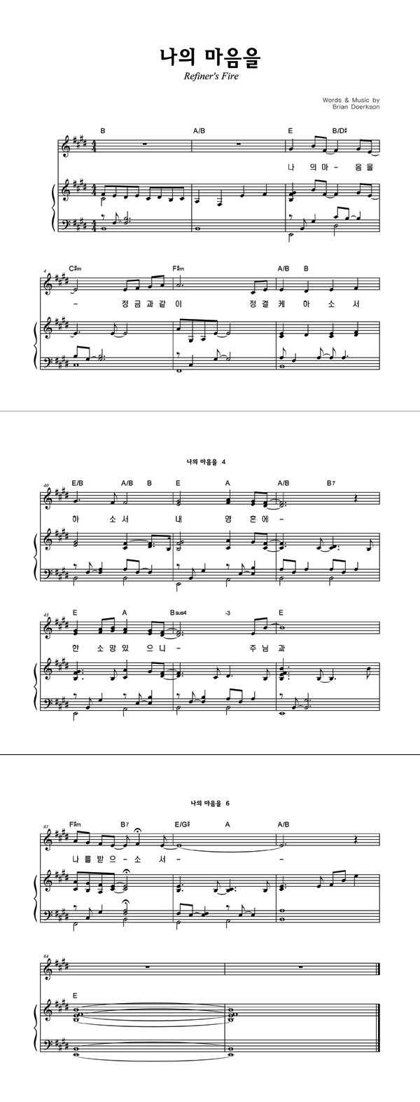 | 나의 마음을 | 성가 2부 + 피아노 반주 |