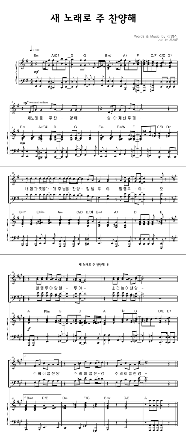| 새 노래로 주 찬양해 | 성가 4부 + 피아노 반주 |