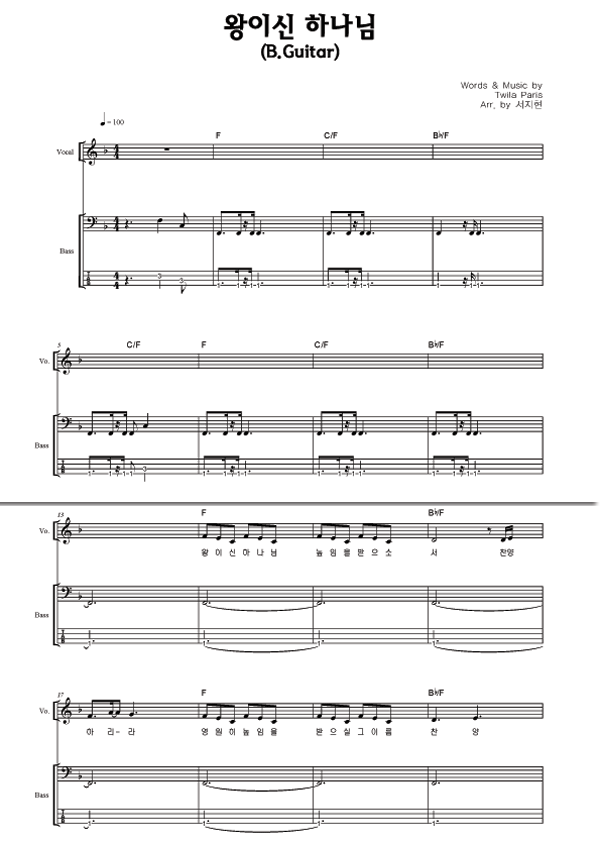 | 왕이신 하나님 큰글씨 | 성가 4부 + 피아노 반주 |