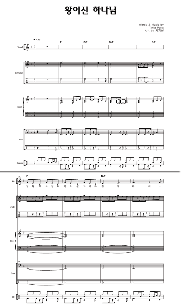 | 왕이신 하나님 | 성가 4부 + 피아노 반주 |