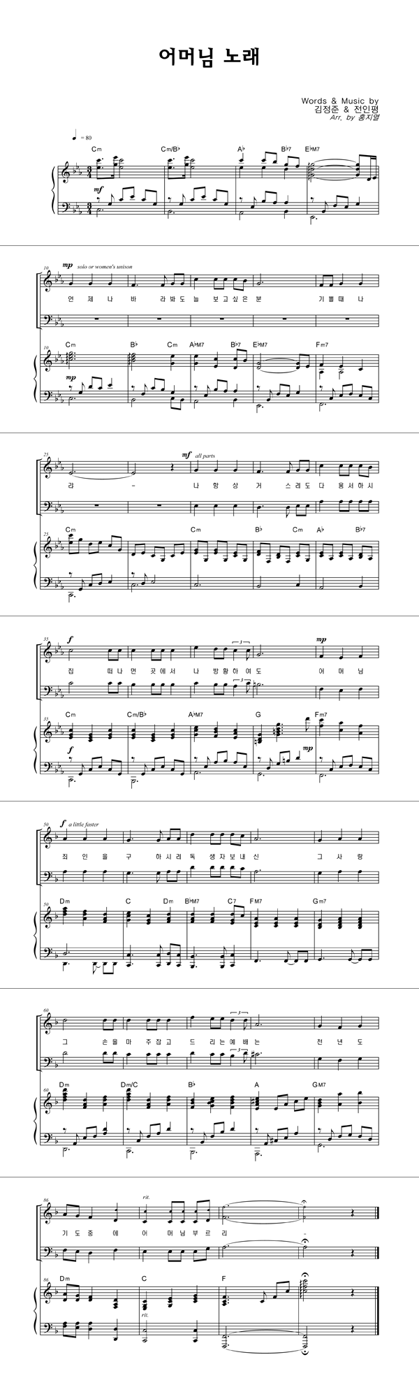 | 성가 2부 + 피아노 반주 |