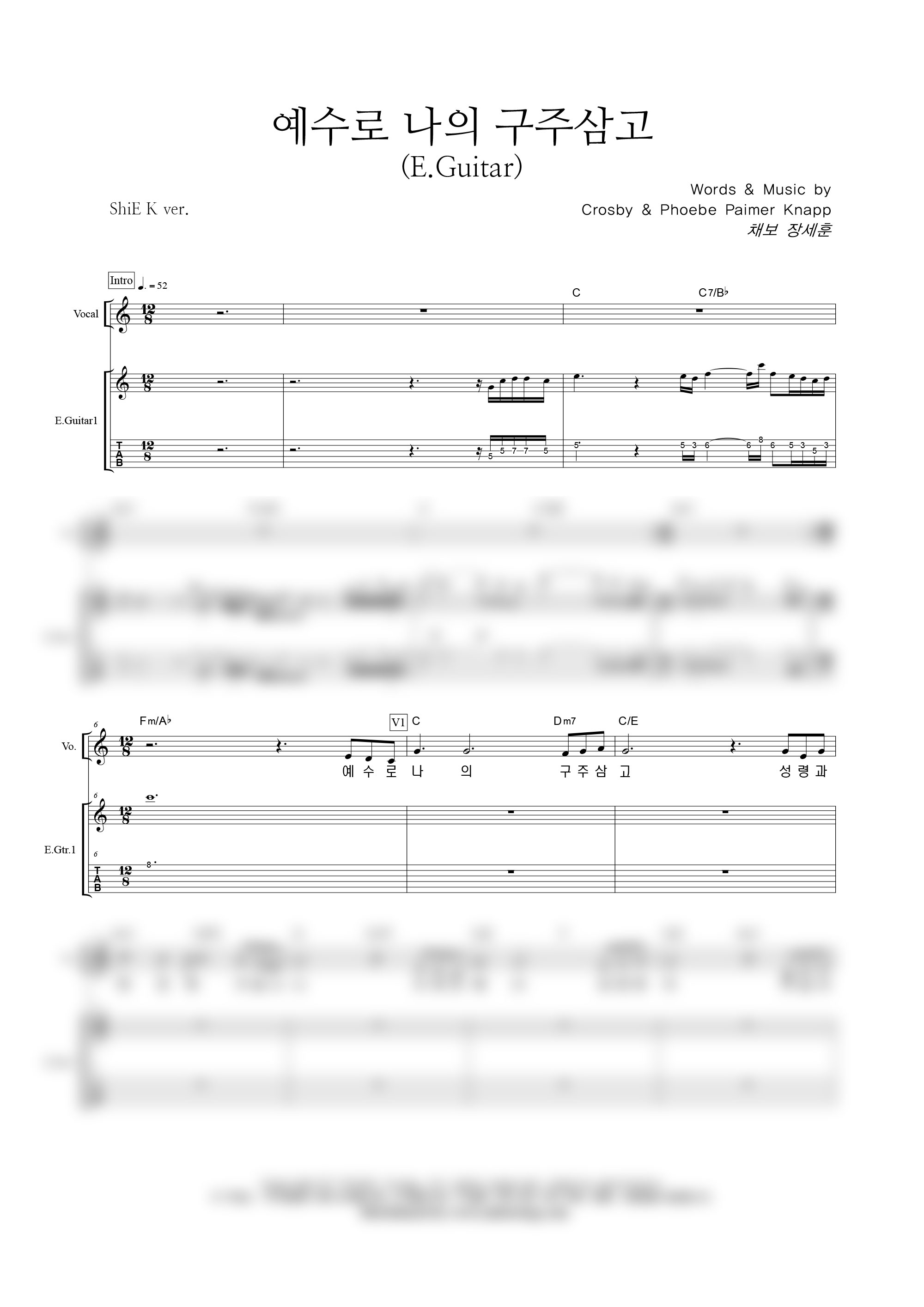 '예수로 나의 구주 삼고' 의 다른 악보형식