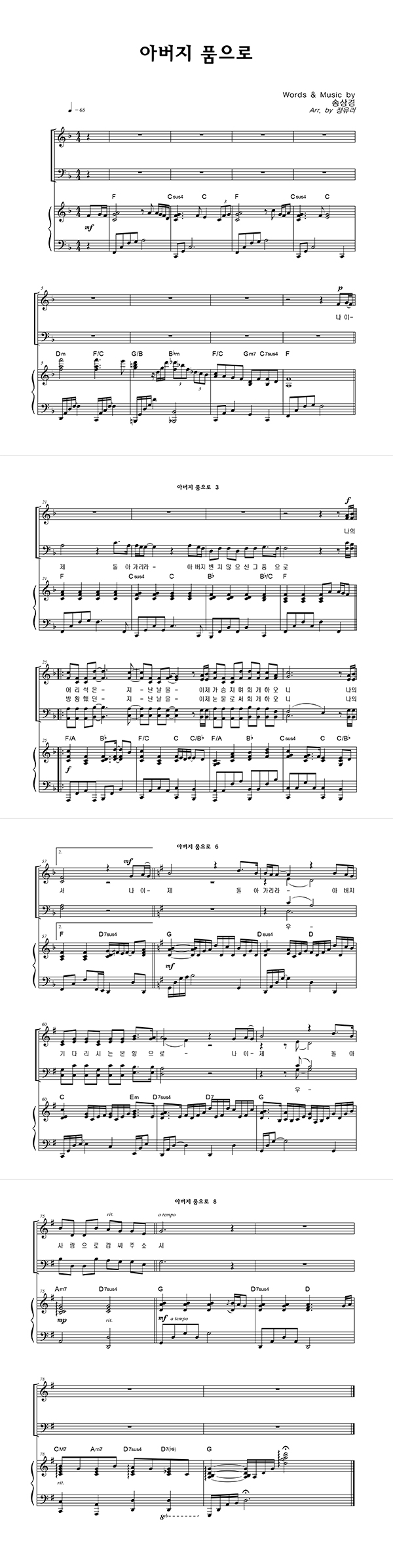 | 아버지 품으로 | 성가 3부 + 피아노 반주 |