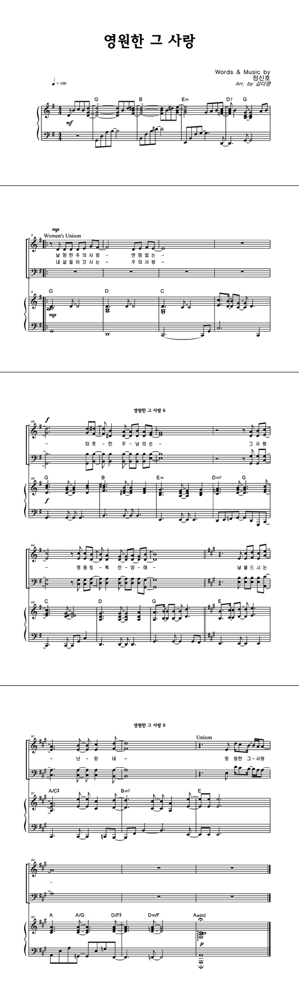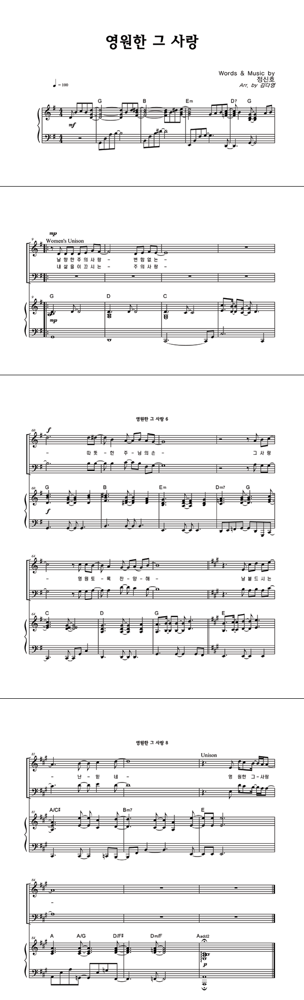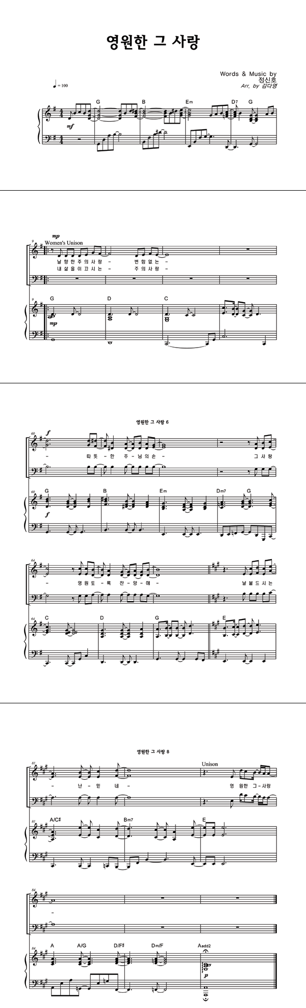 | 영원한 그 사랑 | 성가 4부 + 피아노 반주 |