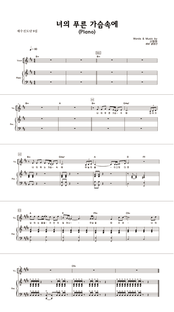 | 너의 푸른 가슴 속에 | 성가 2부 + 피아노 반주 |
