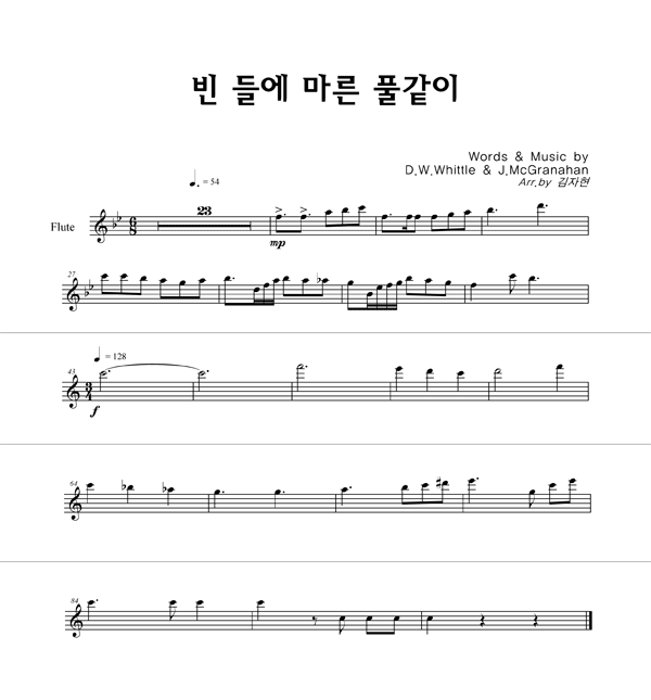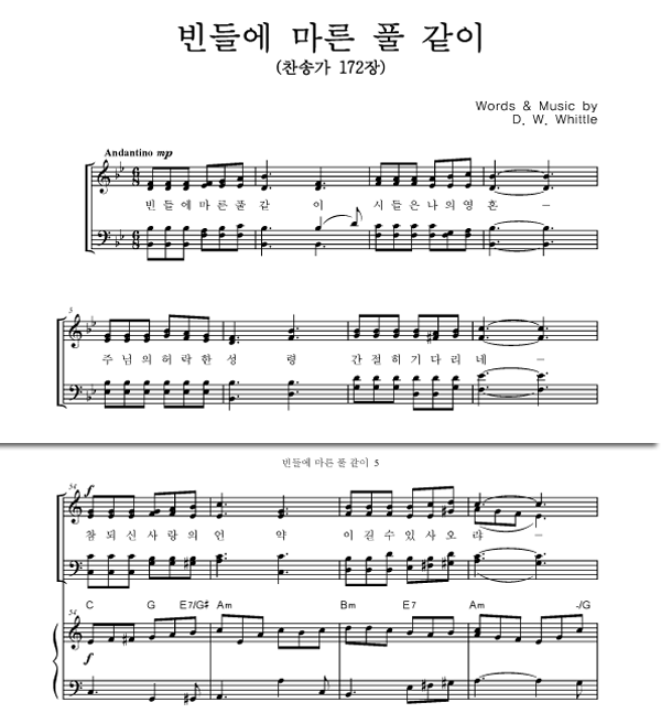 '빈들에 마른 풀 같이' 의 다른 악보형식