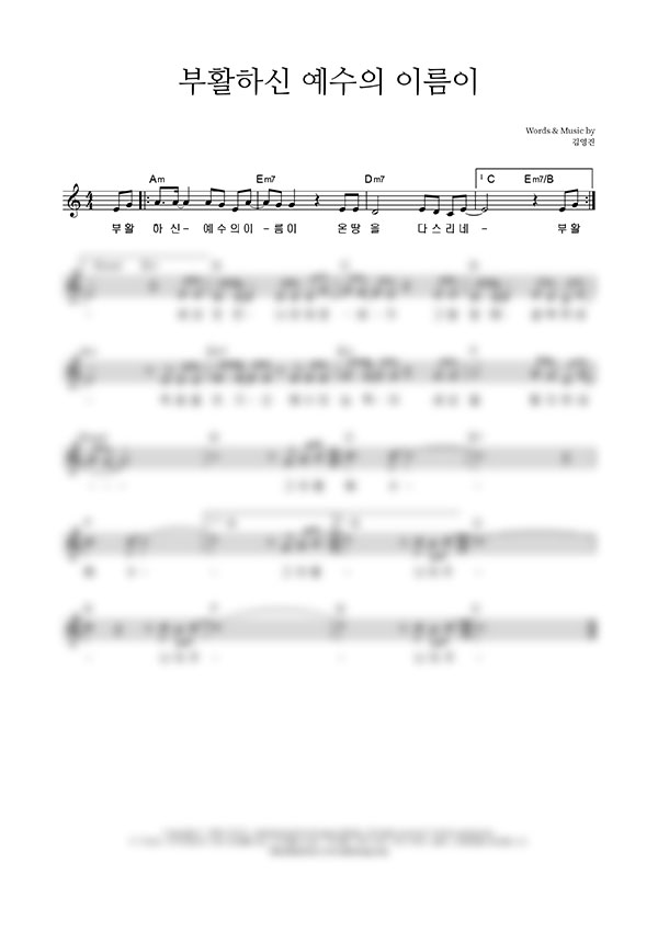 | 부활하신 예수의 이름이 | 성가 3부 + 피아노 반주 |