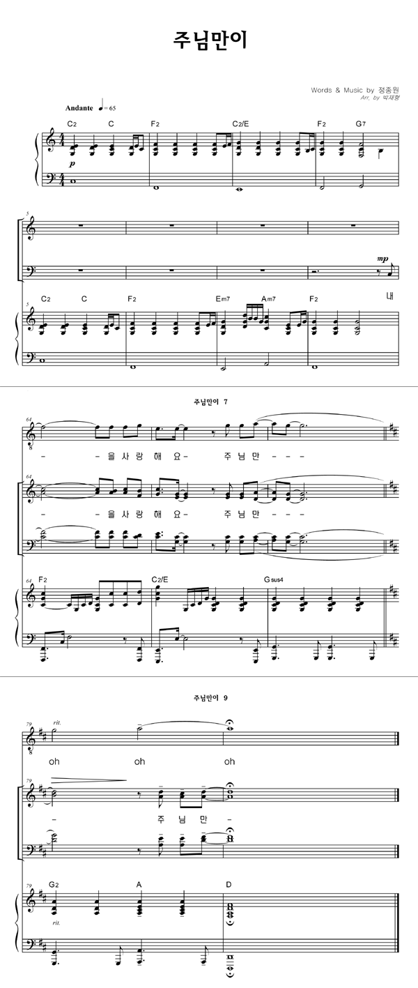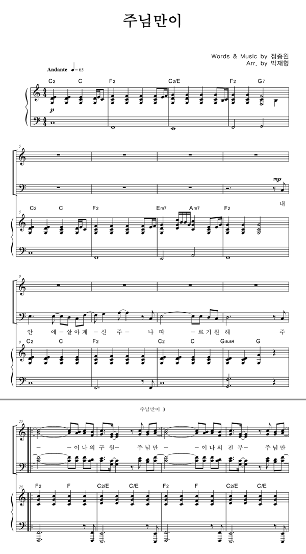 | 주님만이 | 성가 4부 + 피아노 반주 |