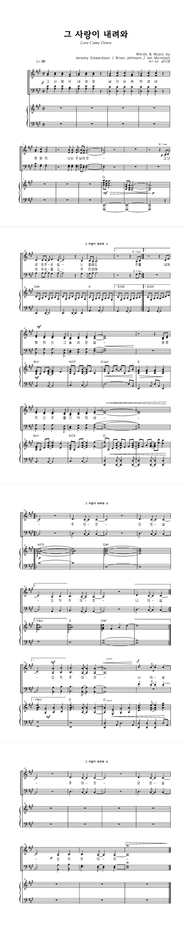 | 그 사랑이 내려와 | 성가 3부 + 피아노 반주 |