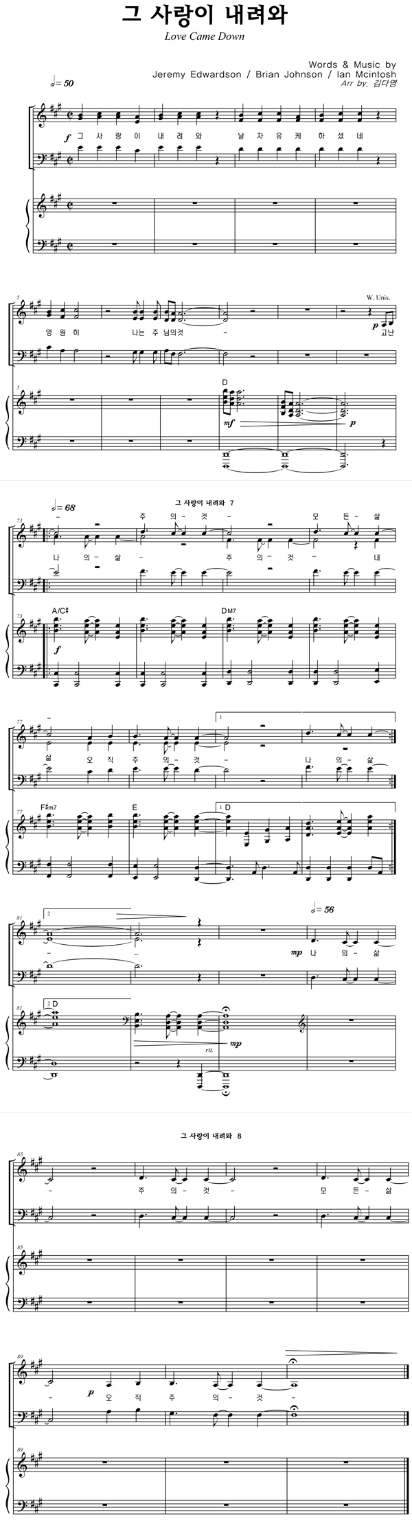 | 그 사랑이 내려와 | 성가 3부 + 피아노 반주 |