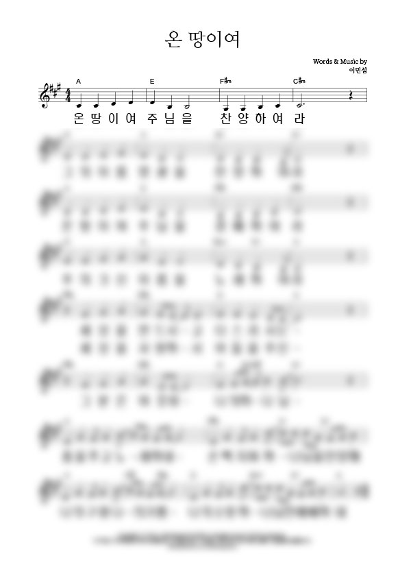 '온 땅이여' 의 다른 악보형식