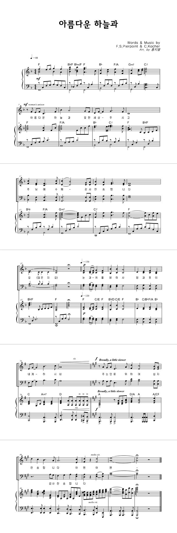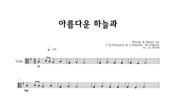 | 아름다운 하늘과 | 성가 2부 + 피아노 반주 |