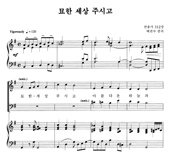 | 묘한 세상 주시고 | 성가 4부 + 피아노 반주 |