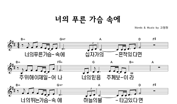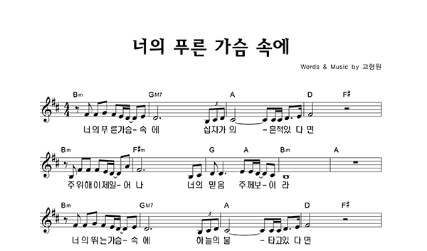 | 너의 푸른 가슴 속에 | 성가 4부 + 피아노 반주 |