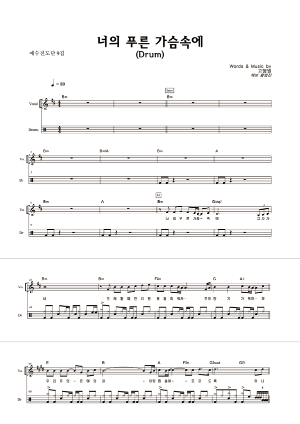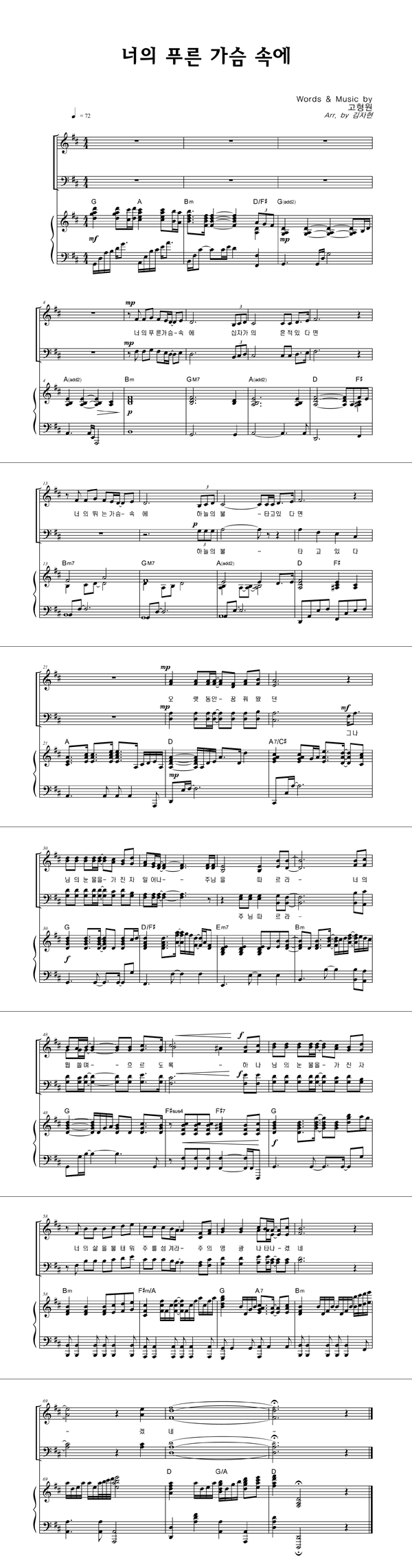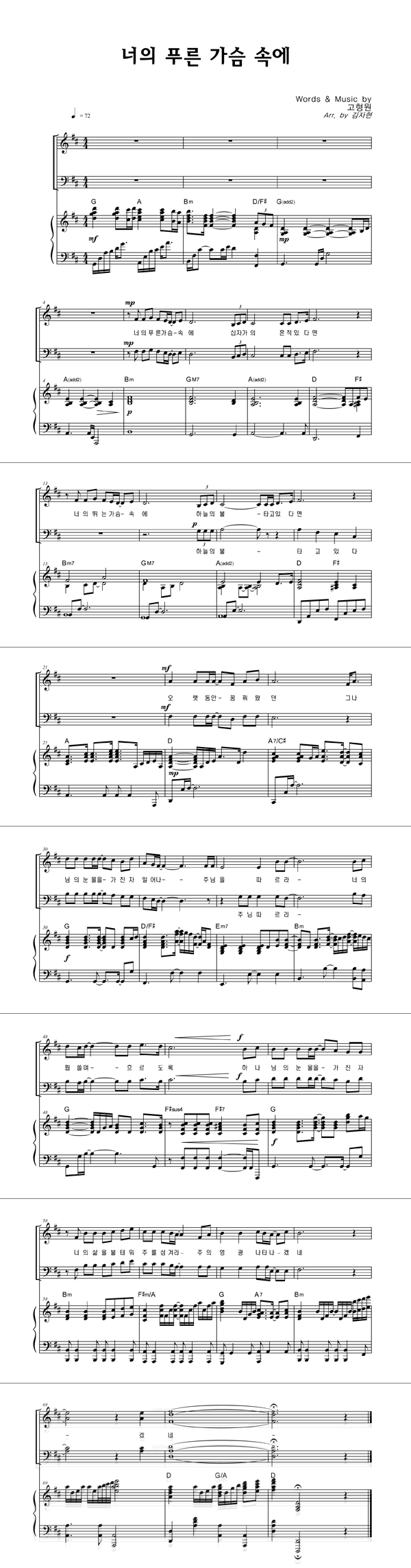 | 너의 푸른 가슴 속에 | 성가 3부 + 피아노 반주 |