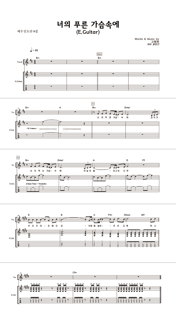 '너의 푸른 가슴 속에' 의 다른 악보형식