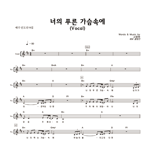 | 너의 푸른 가슴 속에 | 성가 2부 + 피아노 반주 |