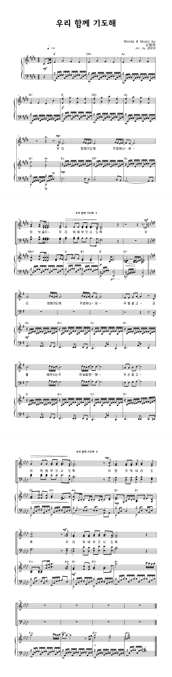 | 우리 함께 기도해 | 성가 2부 + 피아노 반주 |