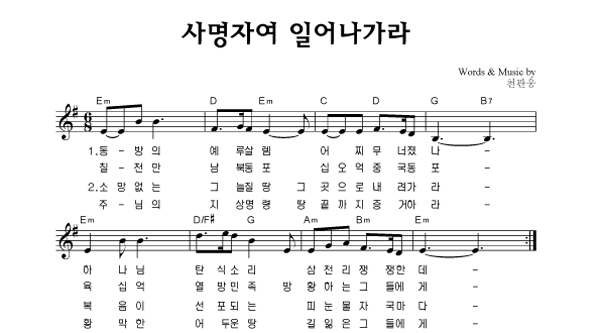 | 사명자여 일어나 가라 큰글씨 | 단선 |