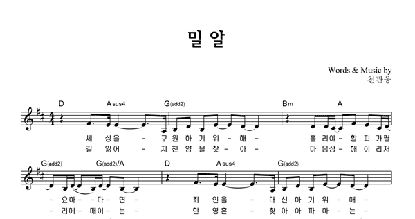 | 밀알 | 성가 2부 + 피아노 반주 |