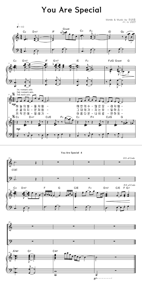 | You Are Special | 성가 4부 + 피아노 반주 |