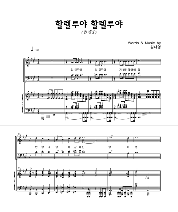 '할렐루야 할렐루야(입례송)' 의 다른 악보형식