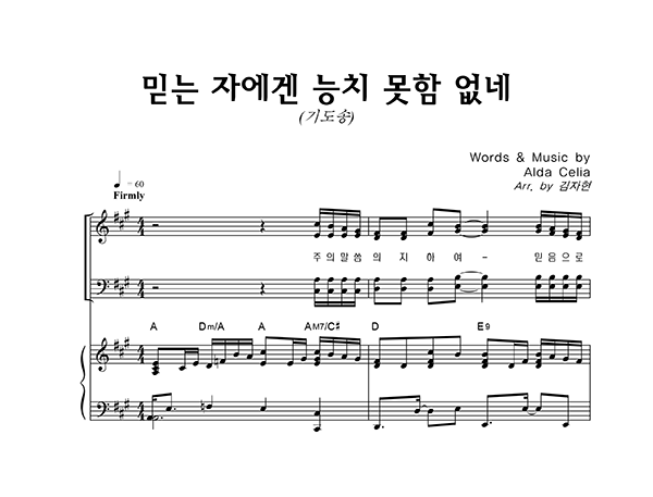 '믿는 자에겐 능치 못함 없네(기도송)' 의 다른 악보형식