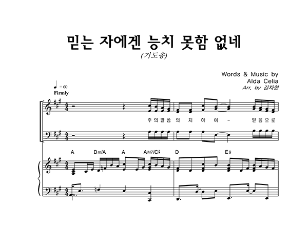 '믿는 자에겐 능치 못함 없네(기도송)' 의 다른 악보형식