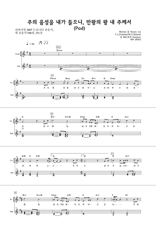 '주의 음성을 내가 들으니' 의 다른 악보형식