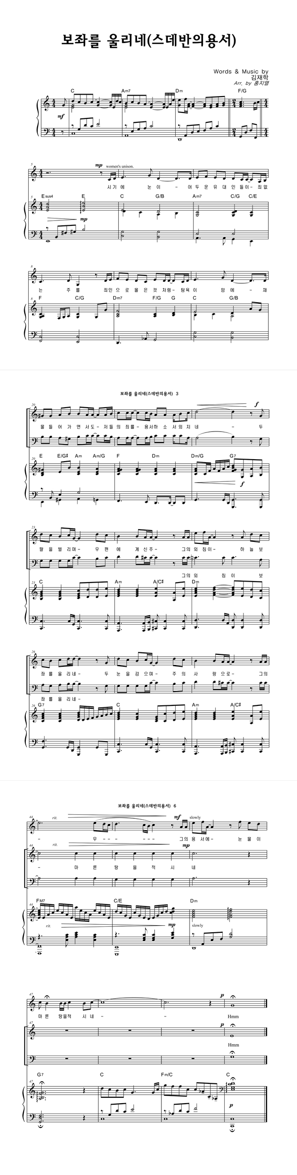 | 보좌를 울리네(스데반의 용서) | 성가 3부 + 피아노 반주 |