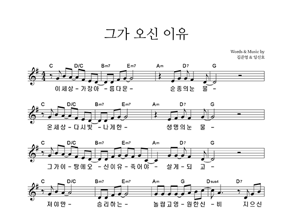 | 그가 오신 이유 | 성가 2부 + 피아노 반주 |