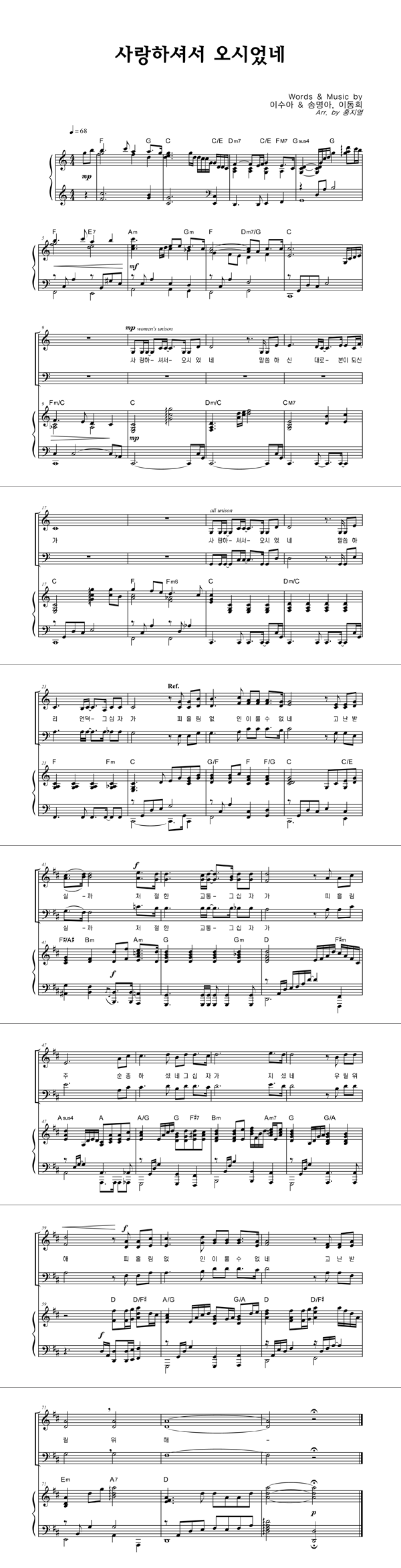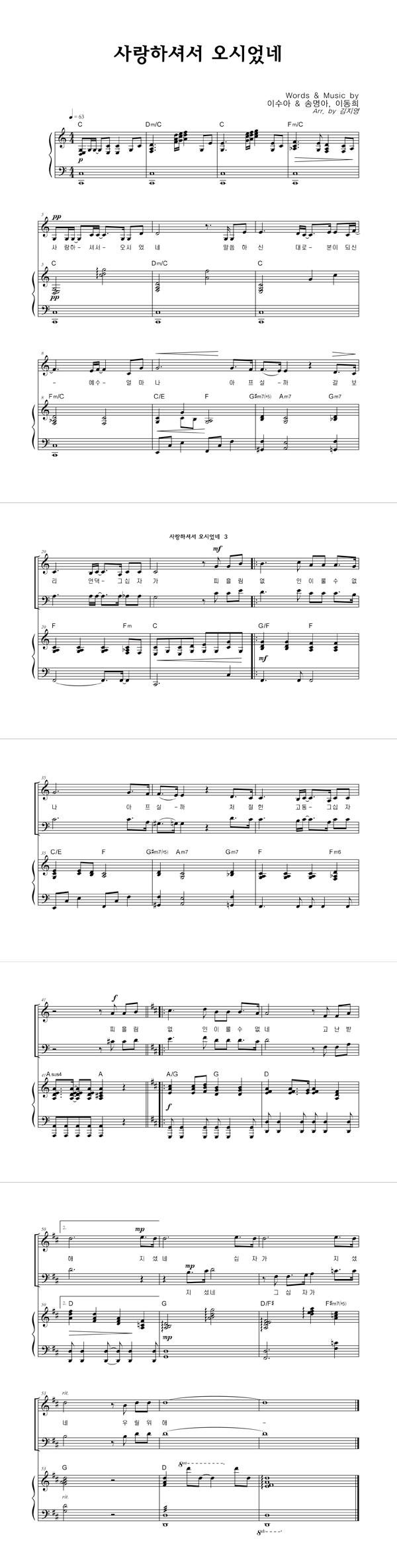 | 사랑하셔서 오시었네 | 성가 2부 + 피아노 반주 |