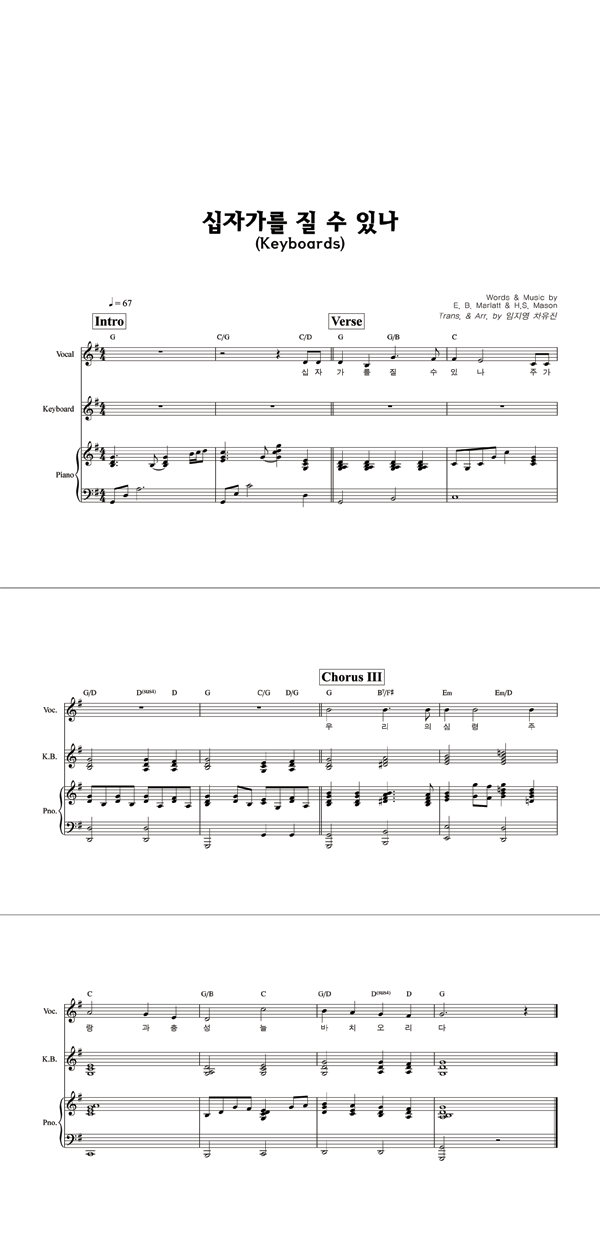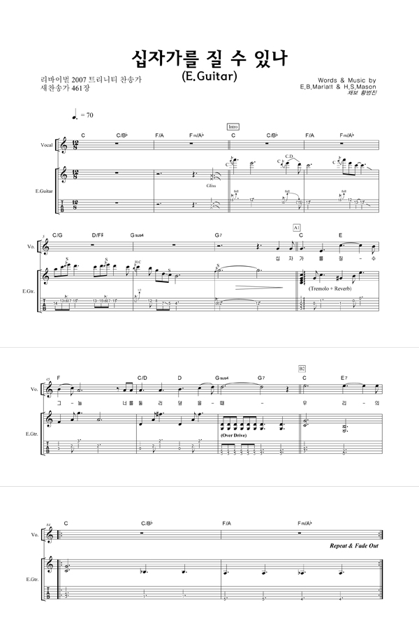 '십자가를 질 수 있나 (찬송가 461장)' 의 다른 악보형식