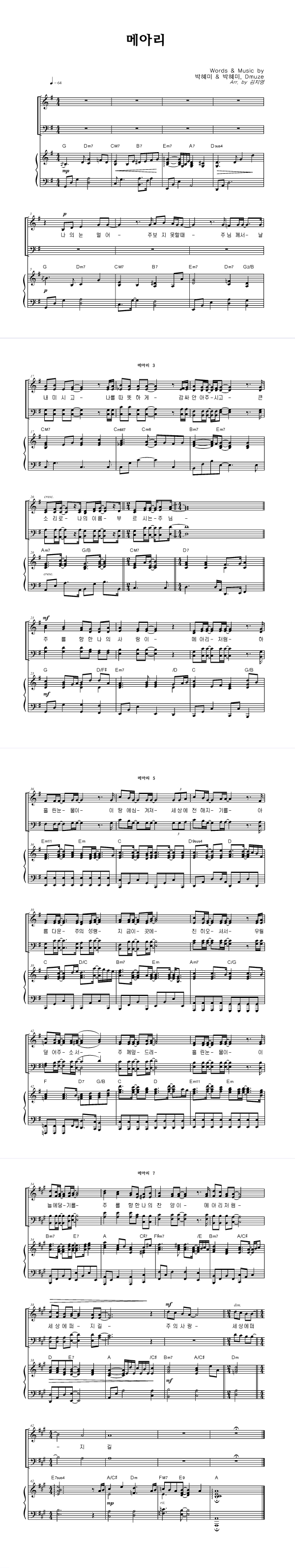 | 메아리 | 성가 4부 + 피아노 반주 |