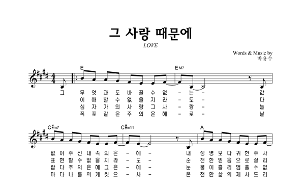 그 사랑 때문에 그 사랑 때문에 부활의 능력으로 구원자 나의 왕 예수