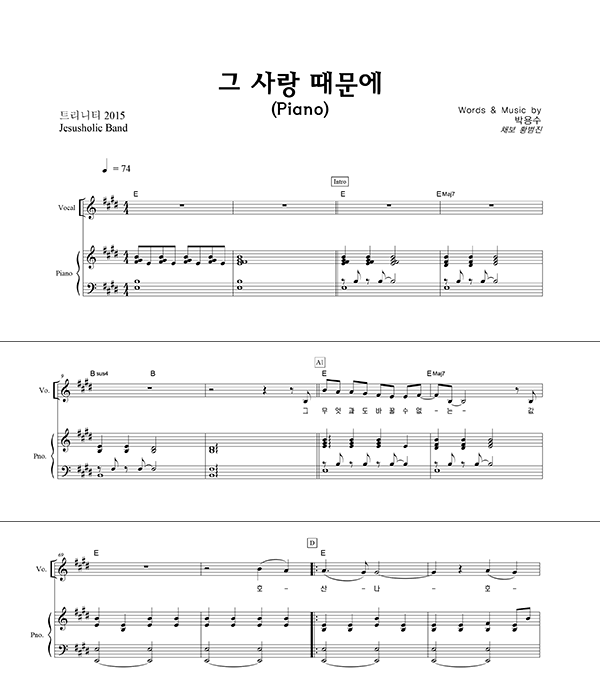 '트리니티 2015 Jesusholic Band (지저스홀릭밴드)' 의 다른 악보